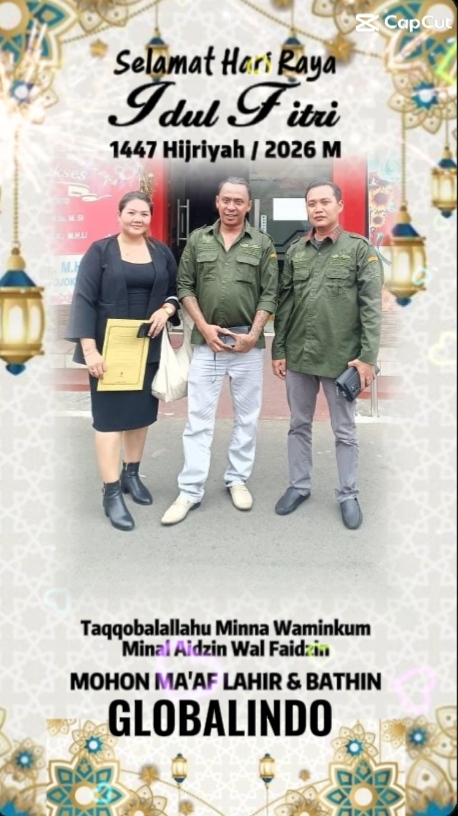 “Kami segenap jajaran Redaksi GLOBALINDO mengucapkan Selamat Hari Raya Idul Fitri 1447 H / 2026 M. Minal aidin wal faizin, mohon maaf lahir dan batin,” demikian pernyataan yang disampaikan.